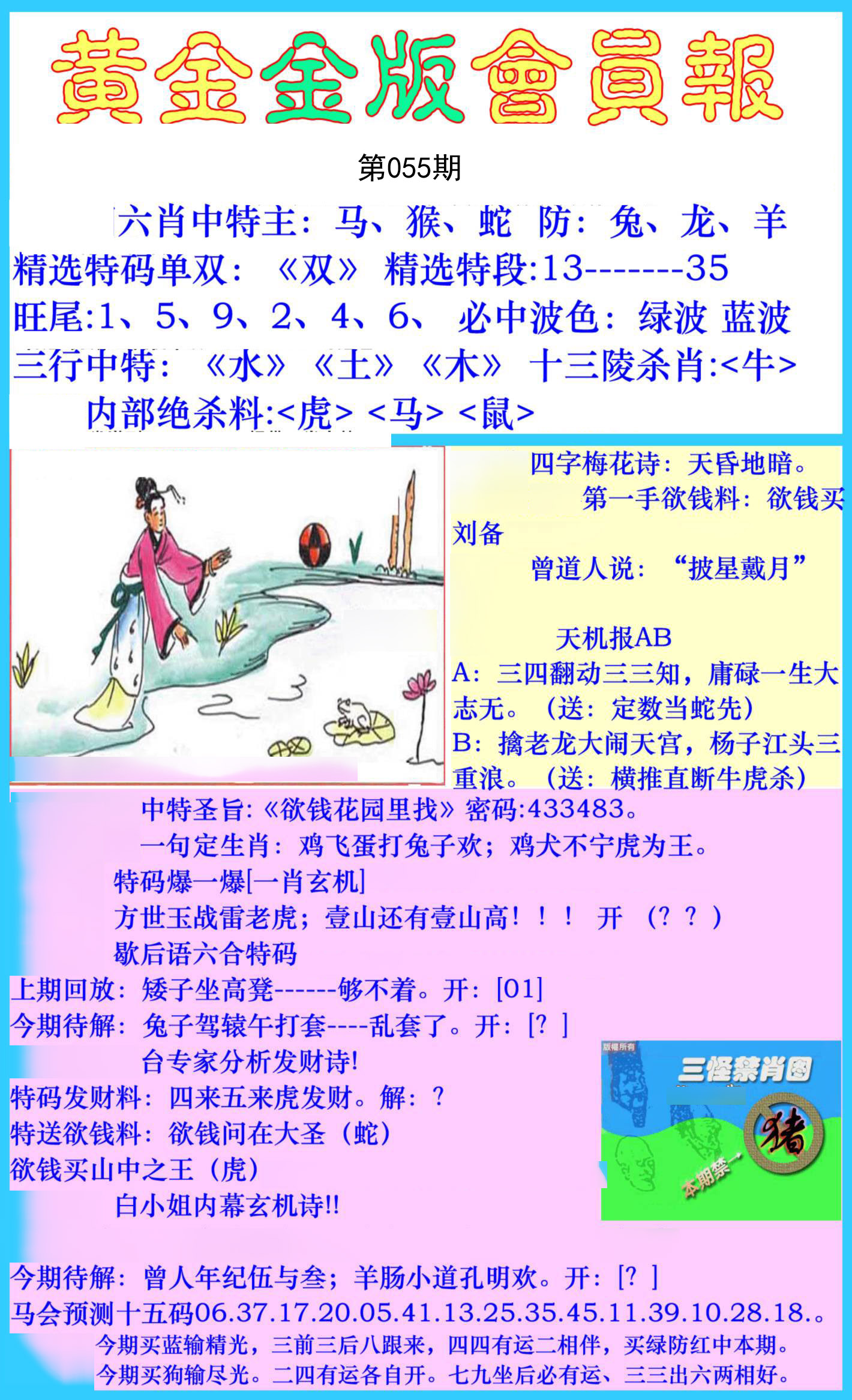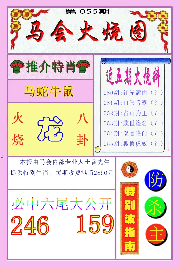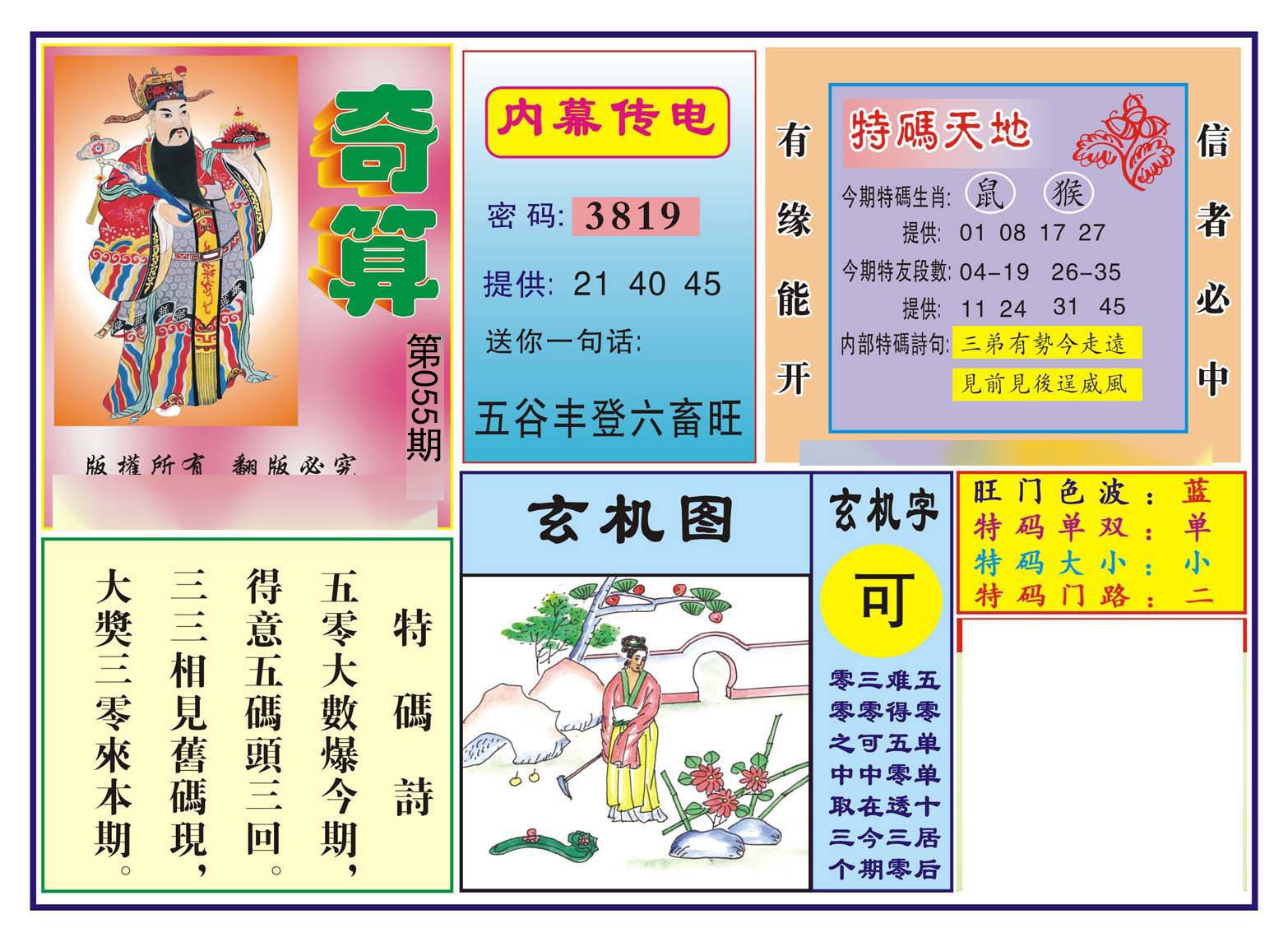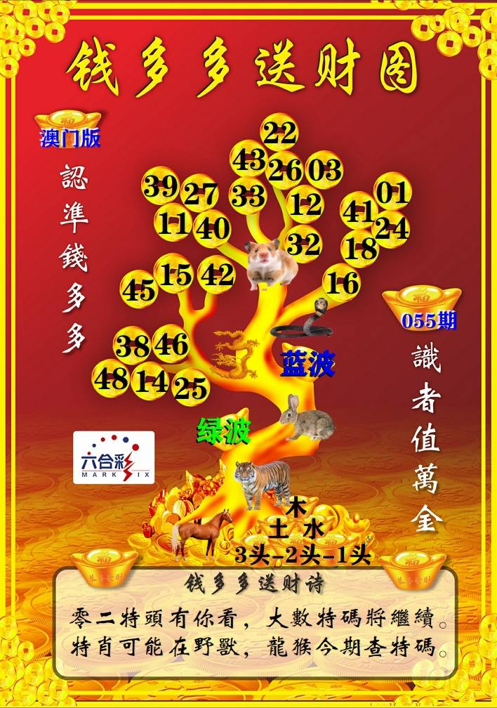 | 055期 财富波色:红蓝 开:?00 | |