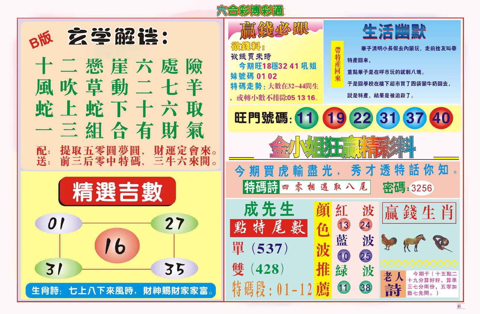 | 052期 财富波色:蓝红 开:鼠19 | |