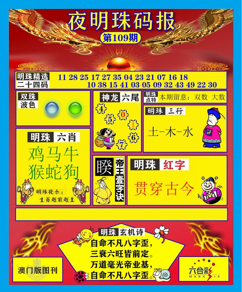 109期 平特一肖 『 龙龙龙 』 |